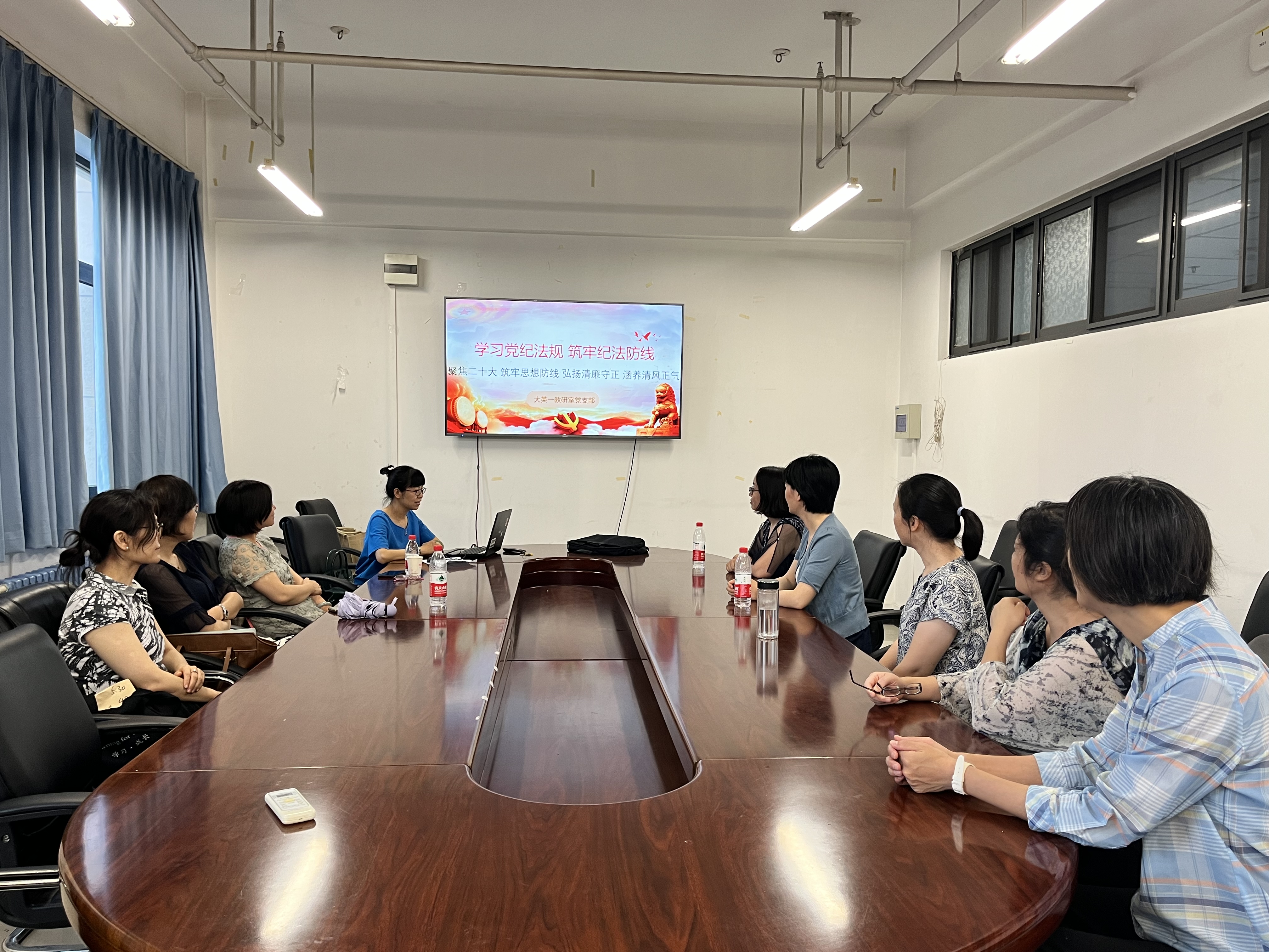 为深入学习贯彻党的二十大精神,引导一线教师强化政治意识、纪律意识,6月28日上午,大英一党支部在主楼C501召开党风廉政建设专题学习会。会议由支部书记陈蓓主持,大英一教研室在岗教职工参加了学习会。