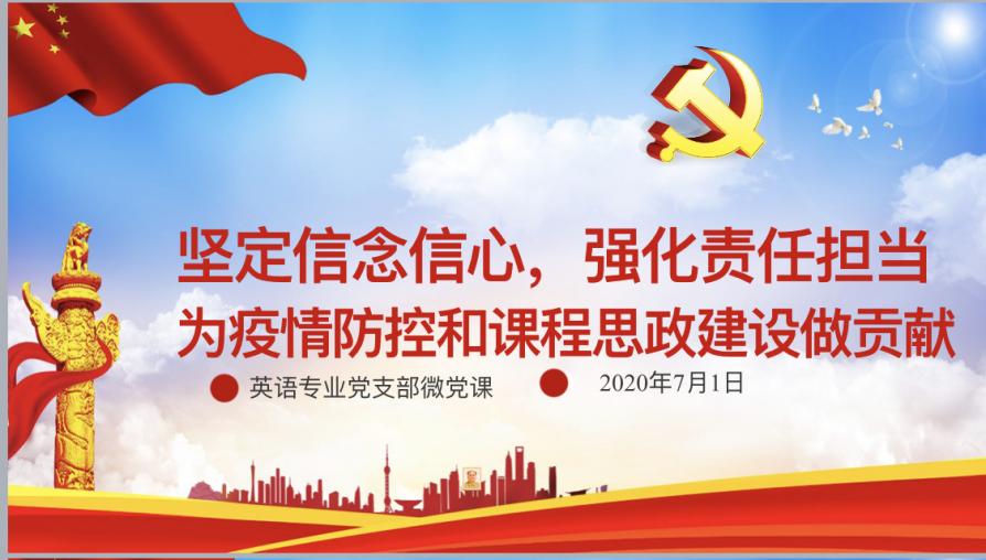 2020年7月1日星期三下午2时,yl23455永利集团英语专业教研室党支部召开了“迎七一,讲战‘疫’故事,悟初心使命”主题党日活动。活动由支部书记郑蓉颖主持,全体支部党员参加了活动,公司党委书记于喜海出席了活动。