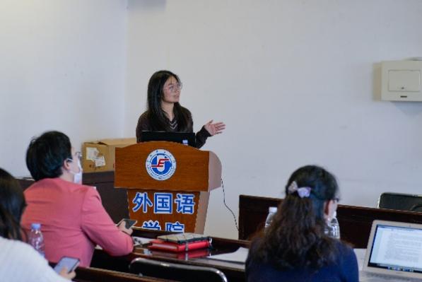 四位研究生党员完成相关专业讲解之后,外国语公司党委宣传委员、英语专业教研室支部书记兼主任郑蓉颖对相关内容进行了点评。她指出,德里达的解构批评与结构主义相比较,是一种更倾向于话语性的文论研究,注重文本的力量,力图还原事物真实面目。埃德加·斯诺在书中消解了西方资本主义传统视角,向外界提供了解读中国革命可信的第三视角,展现了埃德加·斯诺本人对中国革命的同情之心,深刻理解本书有助于理解毛泽东同志曾说的“斯诺是中国人民的老朋友”中饱含的真挚深情。