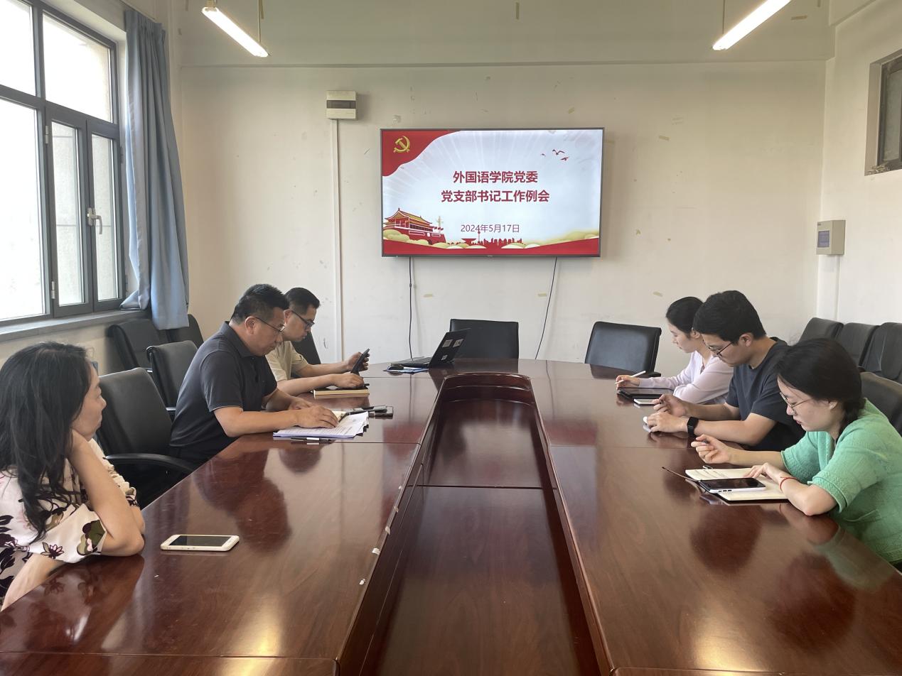 为全面增强基层党组织政治功能和组织功能,深入探索以高质量党建引领高质量发展的工作路径,5月17日下午2点,外国语公司党委于主C501会议室召开党支部书记工作例会。会议由公司党委书记于喜海主持,全体师生党支部书记线上线下共同参会。