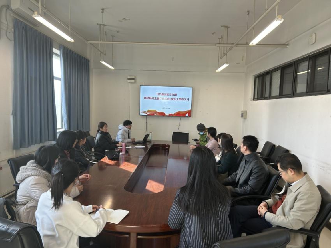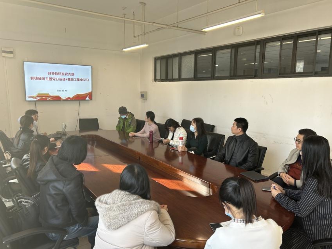为深入学习贯彻习近平新时代中国特色社会主义思想,扎实推进研外教研室党支部的师德师风建设工作。11月28日,研外教研室和党支部在主楼C501开展师德师风专题理论学习会议。本次会议由支部书记尹宇主持,研究生外语教研室和支部全体成员参加了本次学习。