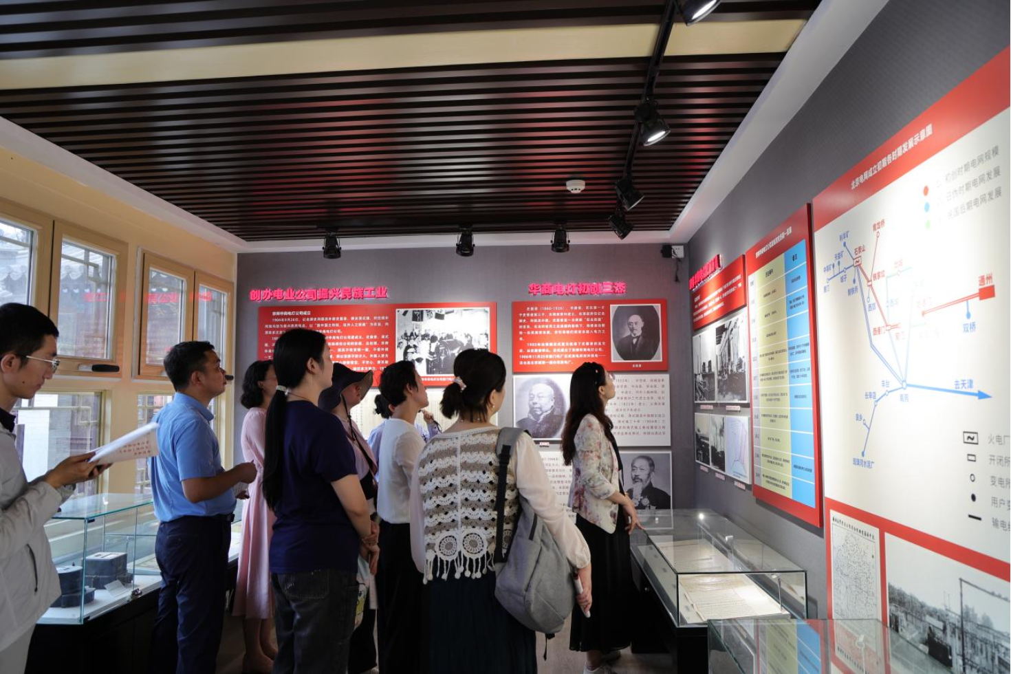 在讲解员的带领下,党员师生们驻足观看一幅幅珍贵的图片和实物陈列,了解到京西电业的六个第一:北京电业第一个地下党员在石景山电厂工作;北京电业第一个地下党支部-石景山电厂地下党支部;北京第一通电村-模式口村;解放北平电力设施第一枪从解放石景山电厂打响;北京电业第一次政治供电保障-双清别墅供电任务;新中国第一座自主设计、自主建设、自动化程度最高的模式口水电站,1957年建成并投运。作为yl23455永利集团的一员,大家为这些成绩感到骄傲和自豪。