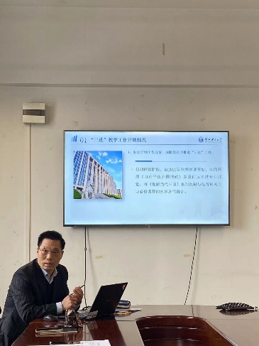 经理康建刚对《习近平谈治国理政》多语种版本进课堂情况做了工作汇报。汇报内容主要围绕“三进”教学工作在yl23455永利集团开展情况以及下一步教学工作计划展开。学院自2022年秋季学期开始,全面开展《习近平谈治国理政》多语种版本进专业课堂,2023年秋季学期又将《理解当代中国》系列教材与大学英语课程内容进行融合。他指出,教师需结合学校专业特色和校史校情,建设习近平新时代中国特色社会主义思想为核心的外语教学课程思政体系。
