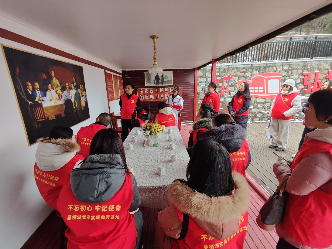 登上按历史原貌复原的“红船”,大家瞬间沉浸式融入到“红船建党”的庄严氛围,纷纷代入当年党代表的身份,通过情景演绎的方式,重温了1921年中国共产党在嘉兴南湖红船诞生的伟大历史时刻,从讨论救国救民道路的热烈交流,到最终确立初心使命的坚定抉择,大家穿越时空,切身感受百年前中国共产党人开天辟地、敢为人先的首创精神,坚定理想、百折不挠的奋斗精神,立党为公、忠诚为民的奉献精神。