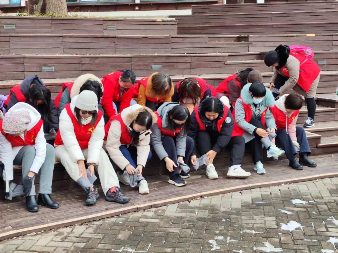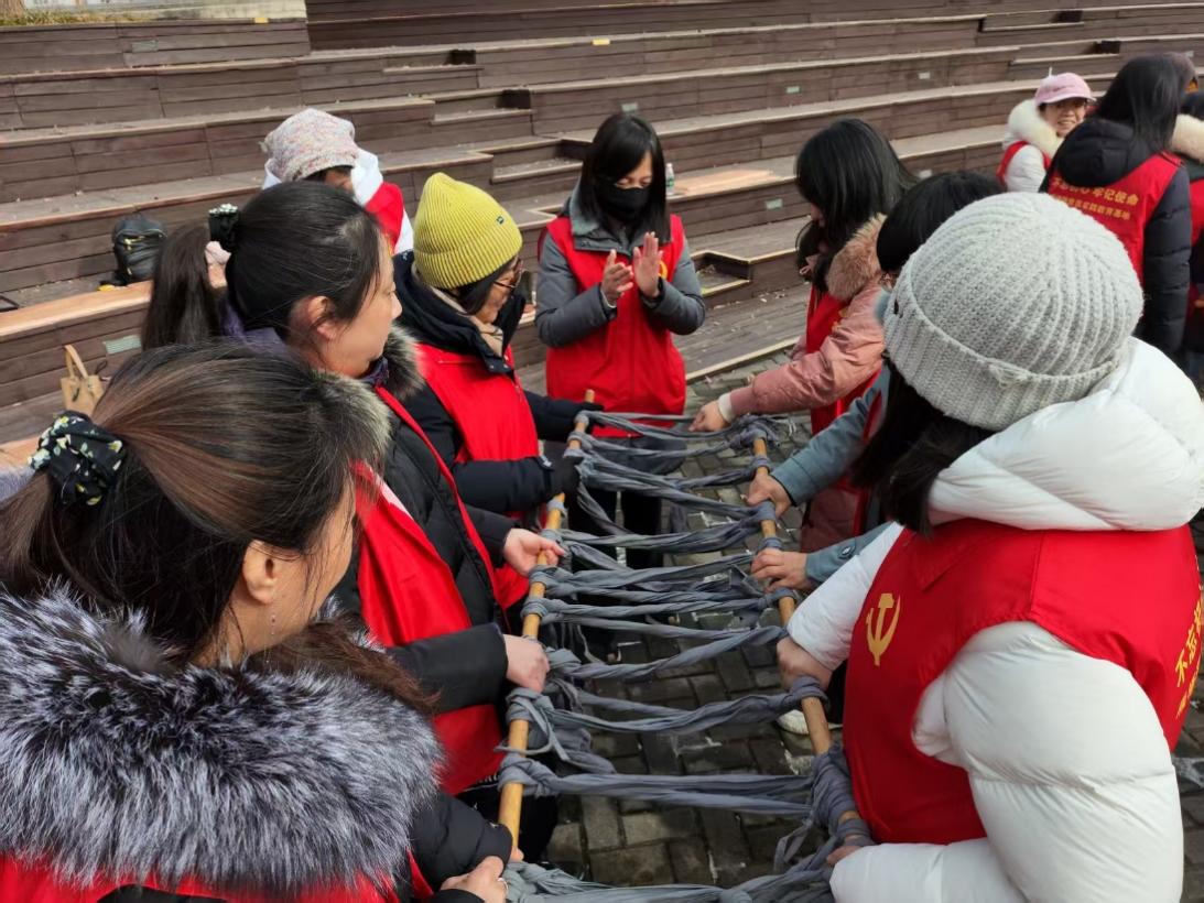 在实践体验环节,大家学习红军绑腿带的绑扎方法,并深入了解绑腿在行军中的实用价值与历史意义。大家以小组为单位,用绑腿带协作捆扎成简易担架,模拟战时场景开展“快速运送伤员”演练。亲手操作的过程中,大家不仅掌握了革命时期的实用技能,更真切体会到革命先辈在艰苦环境下互帮互助、攻坚克难的奋斗精神,深刻感受到当年行军作战的艰辛与不易,进一步强化了团队协作意识与责任担当。