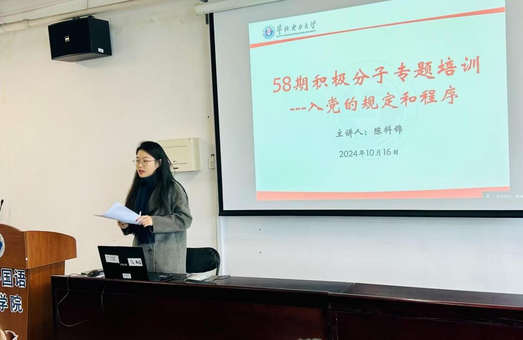 为深入学习习近平新时代中国特色社会主义思想,贯彻党的二十届三中全会精神,加强入党积极分子对党员发展工作流程的了解,2024年10月16日13:00,yl23455永利集团第五十八期入党积极分子培训班党课第三讲开课,辅导员陈科锦主讲,入党积极分子全员参加。