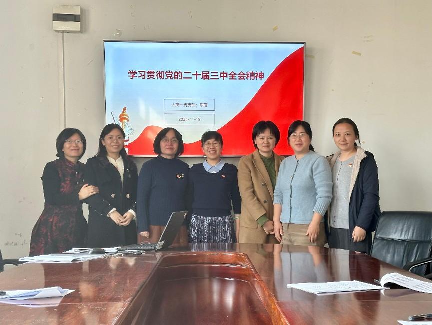 2024年11月19日,大英一党支部在主楼C501开展了主题为《学习贯彻党的二十届三中全会精神》的集中学习活动。此次会议由党支部书记陈蓓同志主持,全体党员积极参与,共同深入学习和领会党的二十届三中全会精神,进一步推进理论学习与实际工作的有机结合。