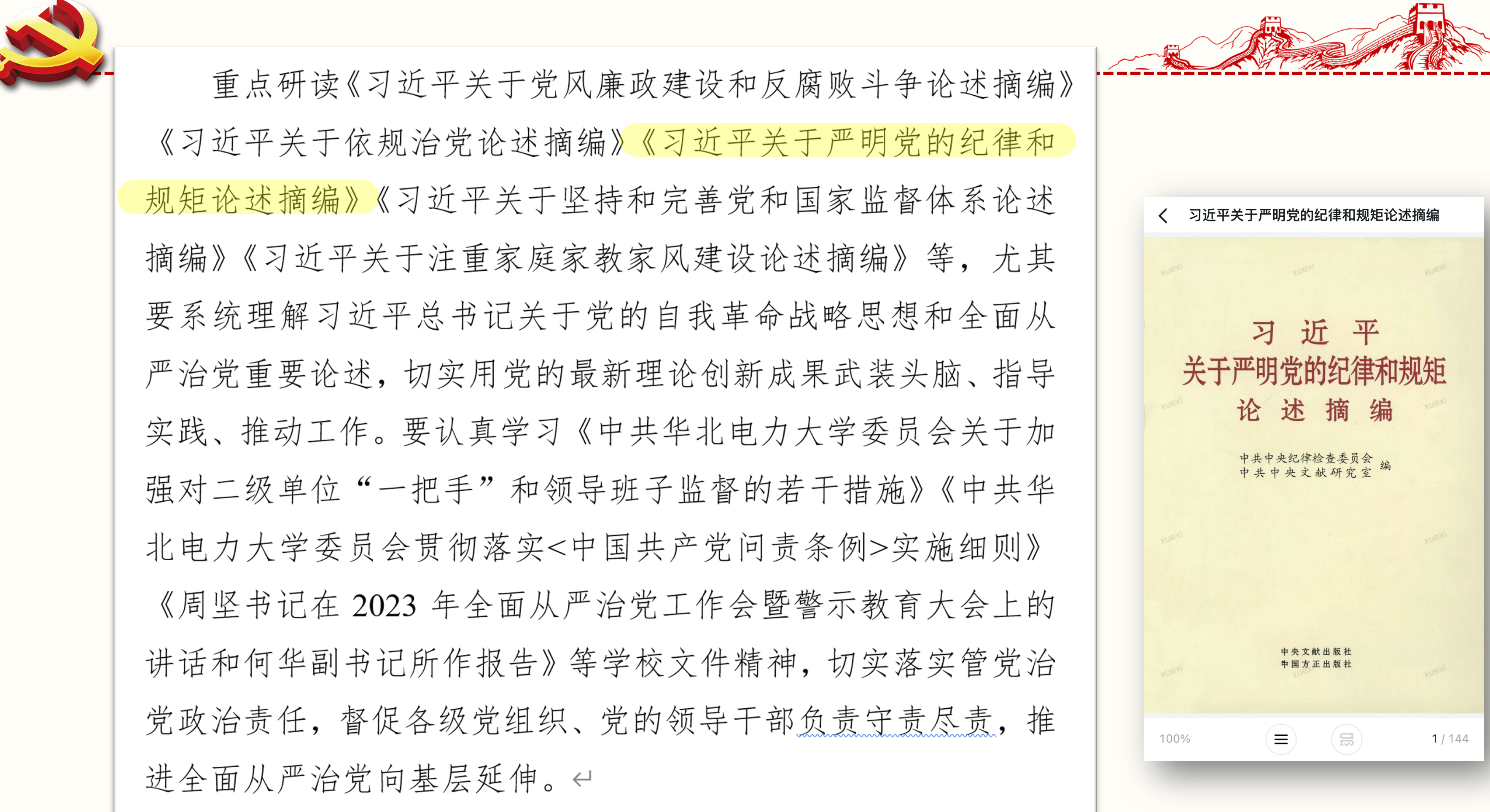 加强党风廉政建设 筑牢廉洁自律防线