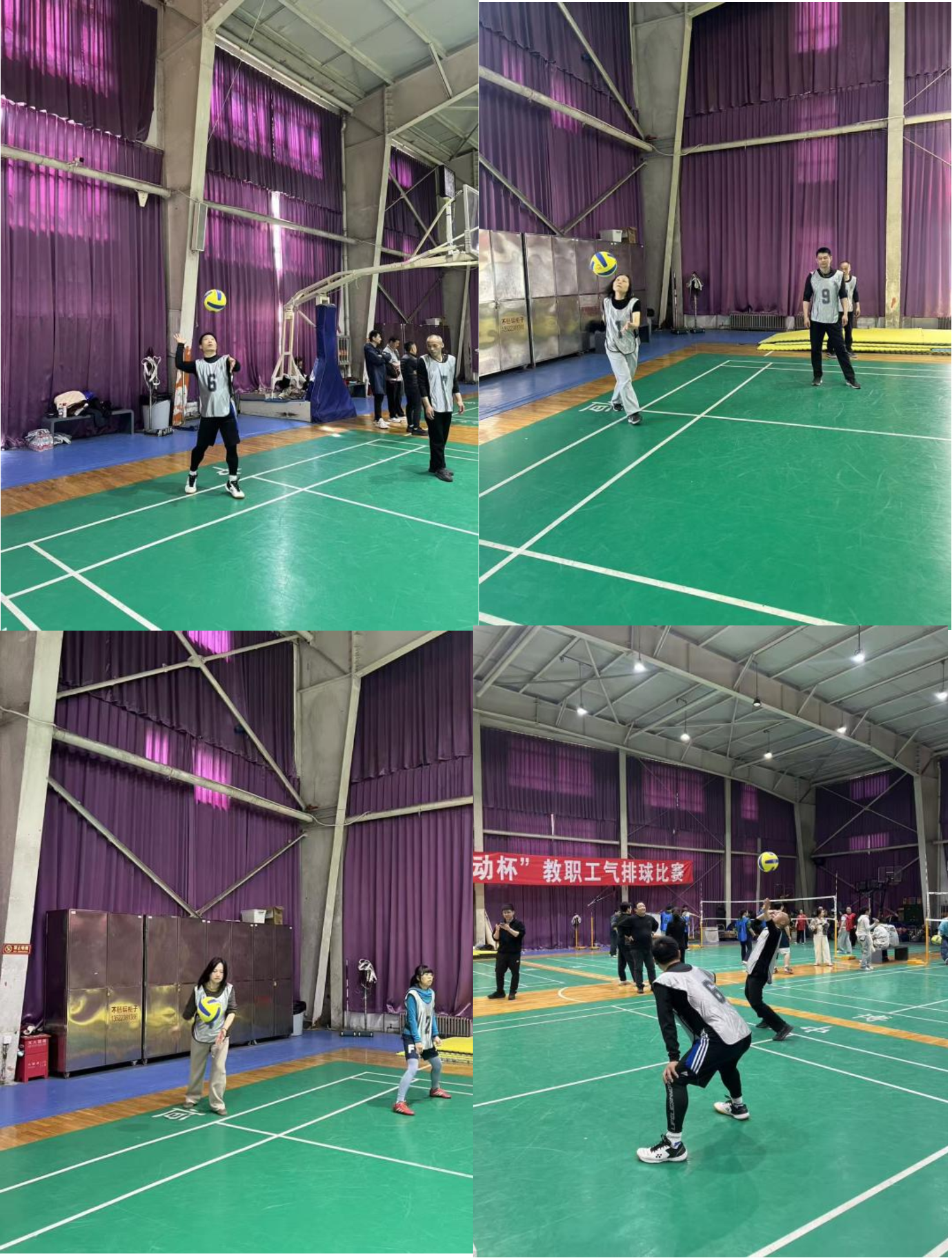 四场比赛中,队员们全情投入、敢打敢拼。赛场上,发球准确,传球配合默契,扣杀果断,拦网防守也很到位。面对实力强劲的对手,大家沉着应对,比分交替时互相鼓励,关键球也打得很稳。每一分都离不开全队的努力,每一次配合都赢得了观众的掌声。