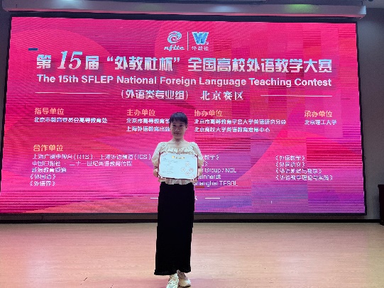 肖瑶获第十五届“外教社杯”全国高校外语教学大赛北京赛区英语专业组二等奖