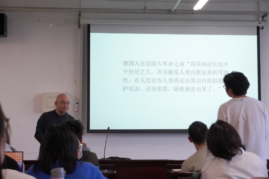 在讲座的交流与提问环节,员工们积极提问,问题涉及托马斯·曼与虚无主义、浪漫派的关系、文学翻译的策略和技巧等问题。黄教授强调,同学们要避免成为“单向度的人”,阅读无边界,不要忽视交叉阅读。另外,文学是一门快乐的学科,不仅因为其研究对象天然具有娱乐功能,更为重要的是,作为艺术,文学具有非理性的内核。文学需要文学研究者大量运用直觉、想象和诗性思维,需要投入情感。并且,文学能够锤炼我们的观察力、想象力和逻辑推理能力,更以游戏的姿态串联起经济、政治、哲学、思想和民族。本场讲座不仅激发了同学们对德国文学的兴趣,也让同学们对文学翻译有了更深刻的认识,更为他们的学术研究提供了新的视角与思路。