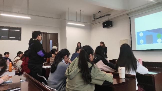 Eloísa对专业未来乐观的展望,使同学们备受鼓舞,畅所欲言。其中,崔博文同学对智能时代口译与语言学的发展提出自己的看法,Eloísa老师与其交流并分享观点,让崔同学有了新的认知并丰富了自己的理解。现场同学积极踊跃,气氛轻松而热烈。