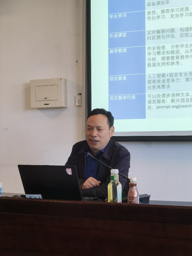 2024年4月6日下午,公司邀请北京外国语大学人工智能与人类语言重点实验室主任李佐文教授开展题为“大语言模型赋能外语教学:场景与策略”学术讲座。讲座由学院副经理刘辉主持。