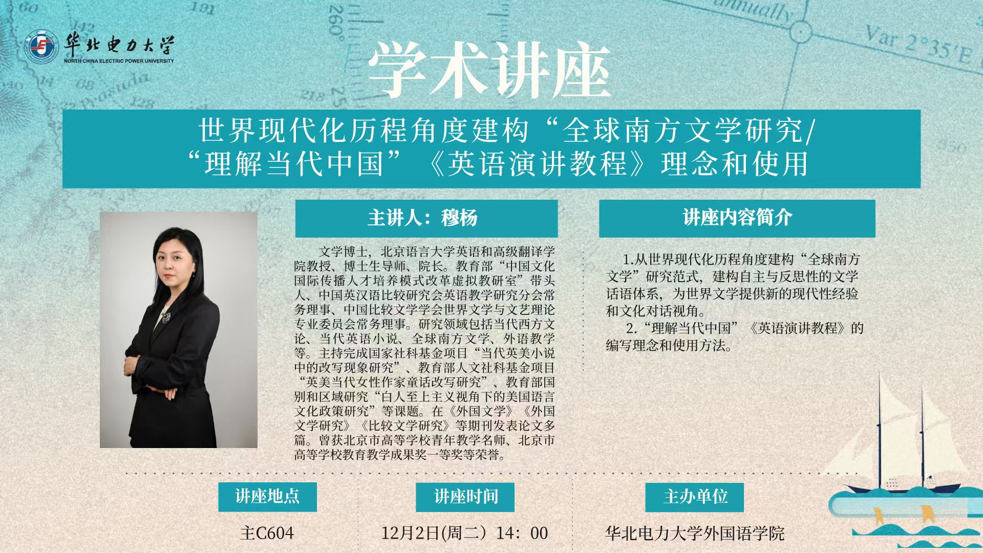学术讲座预告:世界现代化历程视角下的全球南方文学研究与《理解当代中国:英语演讲教程》理念和使用