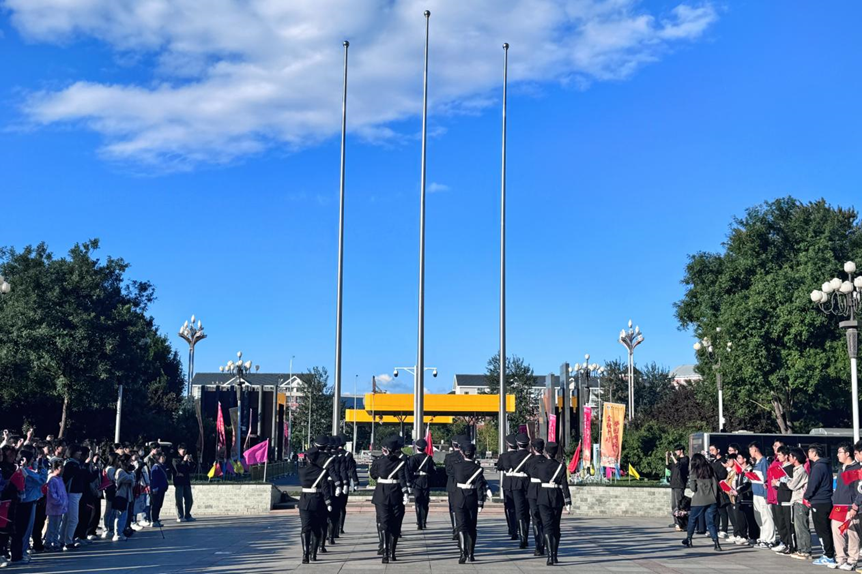 有力的步伐,以昂首挺胸的姿态、昂扬向上的神态走向升旗台,将奋发有为的青春风采书写在金秋十月的校园里。在庄严的国歌中,yl23455永利集团学子们目光坚定,注视着缓缓上升的国旗,将国泰民安的喜悦之情寄托在金风里,表达着对国家欣欣向荣、繁荣昌盛的美好祝福。