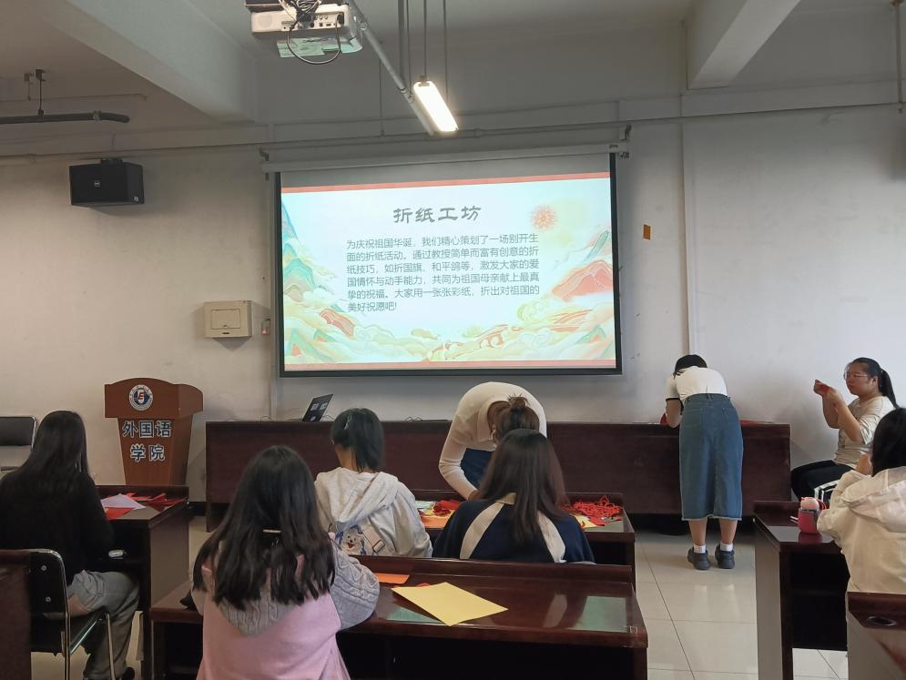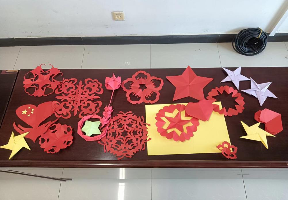 在“创意折纸工作坊”活动中,同学们以折纸这一简洁而富有表现力的艺术形式为载体,在创意的引领下赋予其全新活力。同学们围绕庆祝国庆的主题,通过折叠、裁剪、拼接等手法,创作出了五角星、国旗等各式各样的爱国主题折纸作品。这些作品展示了同学们的巧思妙想和动手能力,也寄托了他们对祖国的深深祝福和美好愿景。