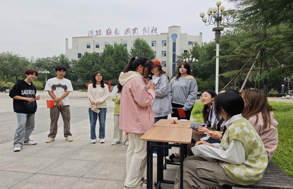 “红色歌曲猜猜猜”活动在悠扬的旋律中拉开序幕。一首首耳熟能详的红色经典歌曲以富有新意的猜歌游戏形式呈现,既考验了大家的音乐素养,又唤醒了大家对峥嵘岁月的记忆。同学们踊跃参与答题,有的凭借对歌曲的熟悉度迅速抢答,有的则通过团队合作集思广益,共同猜出歌曲名。每当正确答案揭晓,现场总会响起热烈的掌声,充分展现了同学们对红色文化的了解与热爱。