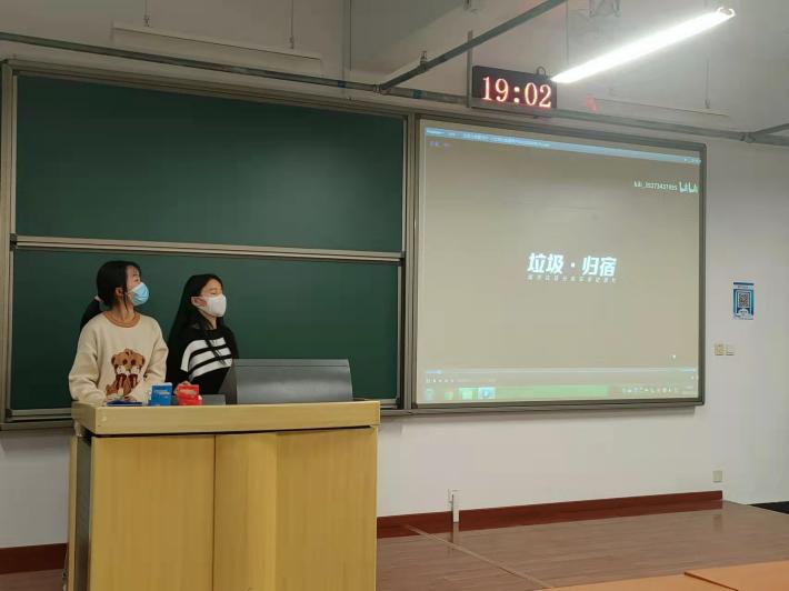 宣讲由一段视频作为开头,视频中垃圾堆叠如山的现状,垃圾分类艰难的推行历程让同学们充分认识到垃圾分类的必要性和重要性。宣讲主体分为垃圾分类的意义,垃圾分类的现状,垃圾的种类以及垃圾分类小程序四个部分组成。系统地向同学们介绍了垃圾分类的相关知识。