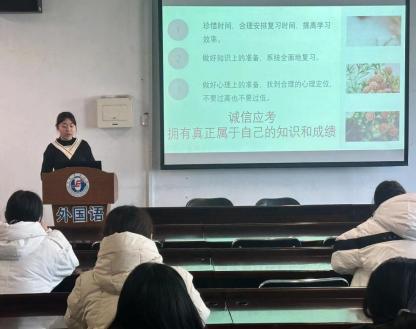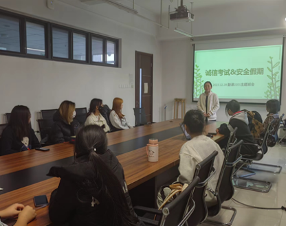 各班班会中班主任倡议同学们认真复习,诚信应考,提醒同学们应在考前学会疏导学习压力,合理安排作息时间,班级内形成良好的学习氛围、互相帮助的向上之风。严肃考风考纪至关重要,翻译2101班同学们纷纷表示要遵守考试纪律,按时参加考试、不带违禁物品进入考场;诚信考试,不作弊、不抄袭、不通过不正当手段获取成绩。翻译2001班班主任刘斌老师重申校规校纪,强调了良好的考风考纪对于员工的学业发展和成长的重要性,明确诚信应考是一个合格的员工必备的基本素质,同学们要树立正确的价值观和行为准则。