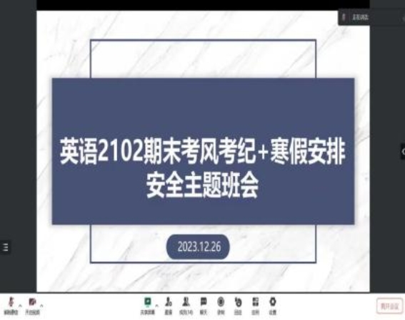 各班班主任和班长强调假期安全问题。翻译2201班班主任张倩着重强调防火、防电、防诈骗及出游安全。外语2301班班主任肖瑶提醒同学们在返乡前,宿舍内不要留已开封食物,避免食物在宿舍内变质腐烂,影响宿舍卫生和安全;关闭电源,避免火灾隐患。按规定完成寒假离校流程,注意交通规则,保护好随身物品,在人员密集处要戴好口罩,平安返乡。在出游方面,做好规划,告知家人,注意个人安全,减少“凑热闹”心态。希望同学们度过一个平安、愉快、充实的寒假。