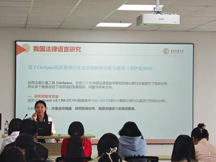 陶芸教授首先凭借丰富的学识,介绍了近二十年国内法律语言的研究成果,并通过分析相关论文的发文量趋势、与期刊分布,对各细分领域的研究现状进行了概述。其次,她更深入地剖析了该领域的研究热点,如法律语言,立法语言,法律翻译,法律英语等,并在此基础上进行了反思与前瞻。随后,陶教授将焦点集中于我国近二十年的法律日语词汇研究,就法律词汇,法律表达等方面,为同学们进行了更详细更深入的讲解。在介绍日本学界的相关研究时,陶教授生动地举例说明了「逮捕」、「搜查」、「詢問」等日中法律同行词的翻译差异。陶教授还梳理了当前该领域的主要研究方向,包括术语的考证与对比研究、法律翻译研究、法律语言本体研究等。此外,陶教授也以发展的眼光指出了该领域研究目前面临的挑战:学科定位不明确、理论深度有待加强、资源建设落后等。同时,她也展望了未来的发展方向,即拓展研究领域、加强学科合作、以及利用人工智能进行辅助研究。