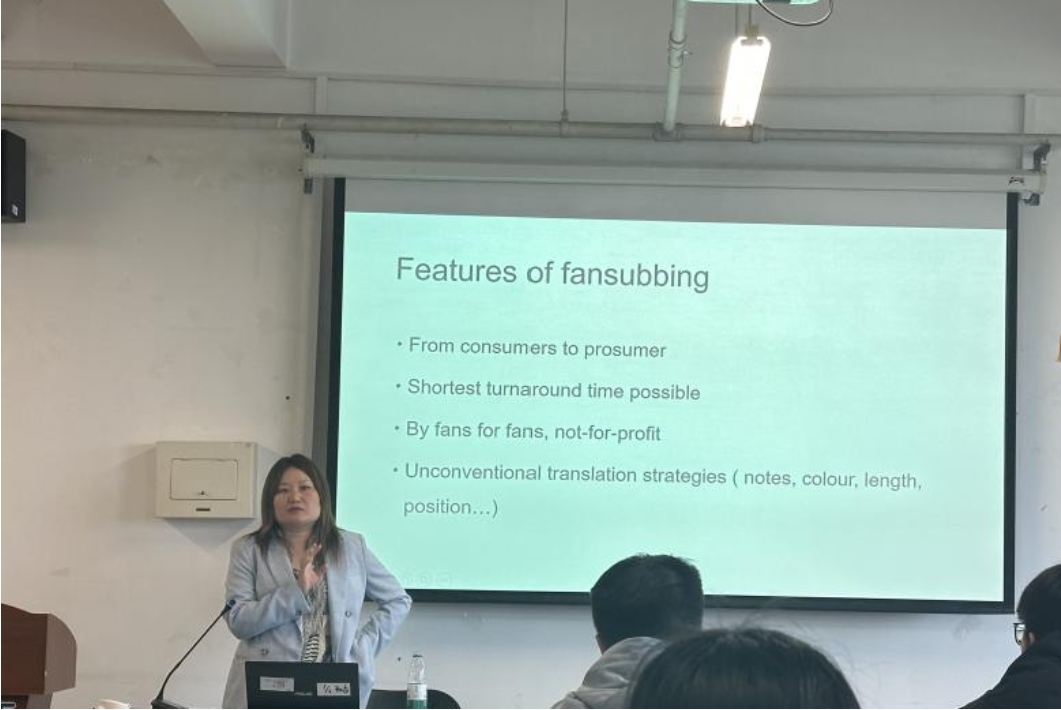 之后,金教授对多符号的运用进行了详细的讲解,包括语言符号和非语言符号在视觉与听觉层面的作用。她还介绍了多种影视翻译形式,如字幕、配音、解说、口述影像、听障者字幕和手语翻译等,深入分析了每种形式的特点及适用场景。她强调,字幕翻译虽然能够保留原版配音且便于语言学习,但在视觉效果上可能存在干扰,不适合儿童观众。此外,金教授分享了影迷翻译的发展历程,指出其始于1980年代美国,并在1990年代随着互联网普及迅速壮大,为中国影视作品的国际化奠定了基础。
