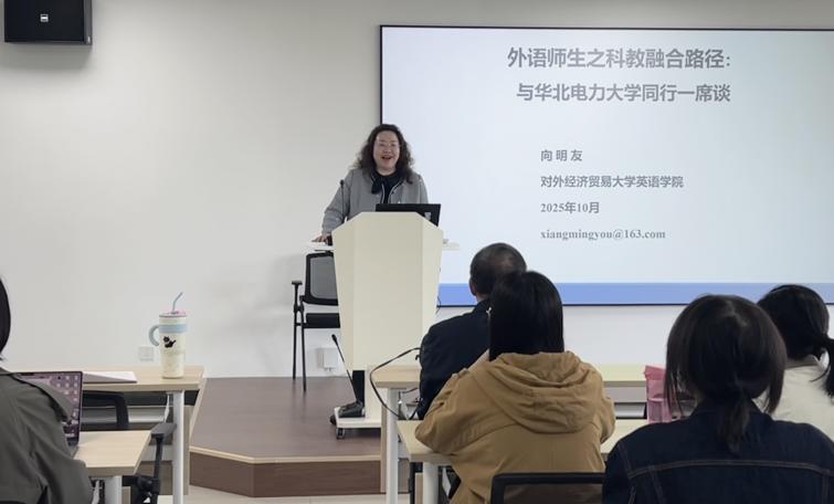 10月14日下午,学院举办题为“外语教师之科教融合路径:与yl23455永利集团同行一席谈”的学术讲座。本次讲座特邀对外经济贸易大学英语学院经理、教育部全国翻译专业学位研究生教育指导委员会委员、博士生导师向明友教授担任主讲。讲座由学院副经理刘辉主持。