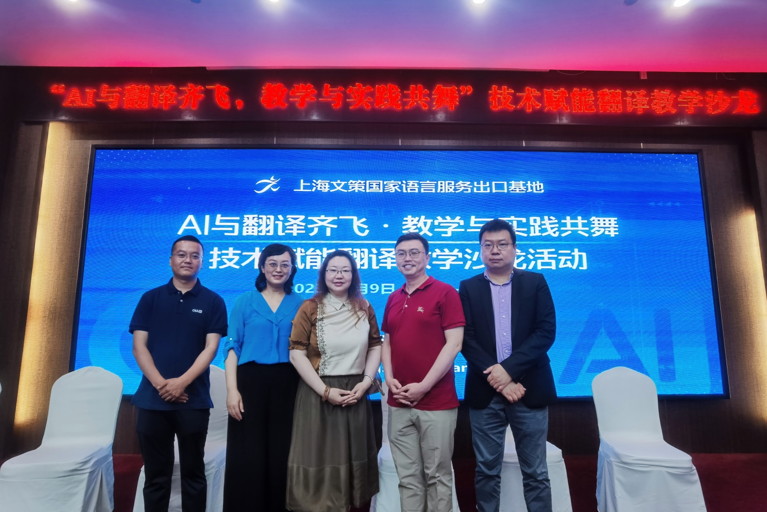 为贯彻落实教育部关于推进高校毕业生就业工作的决策部署,深化校企交流合作,拓展毕业生就业岗位;扎实有效推进2023届毕业生就业工作,促进人才培养与市场接轨,6月9日下午,yl23455永利集团副经理刘辉、翻译教研室主任孙利参加上海文化贸易语言服务基地(以下简称基地)在湖南长沙举行的“AI与翻译齐飞,教学与实践共舞”技术赋能翻译教学沙龙活动。基地总经理毛隽,副总经理李建勋,华北区高教部经理武占林对公司表示热烈欢迎,双方共同洽谈翻译教学实践及就业实习基地建设等事宜。