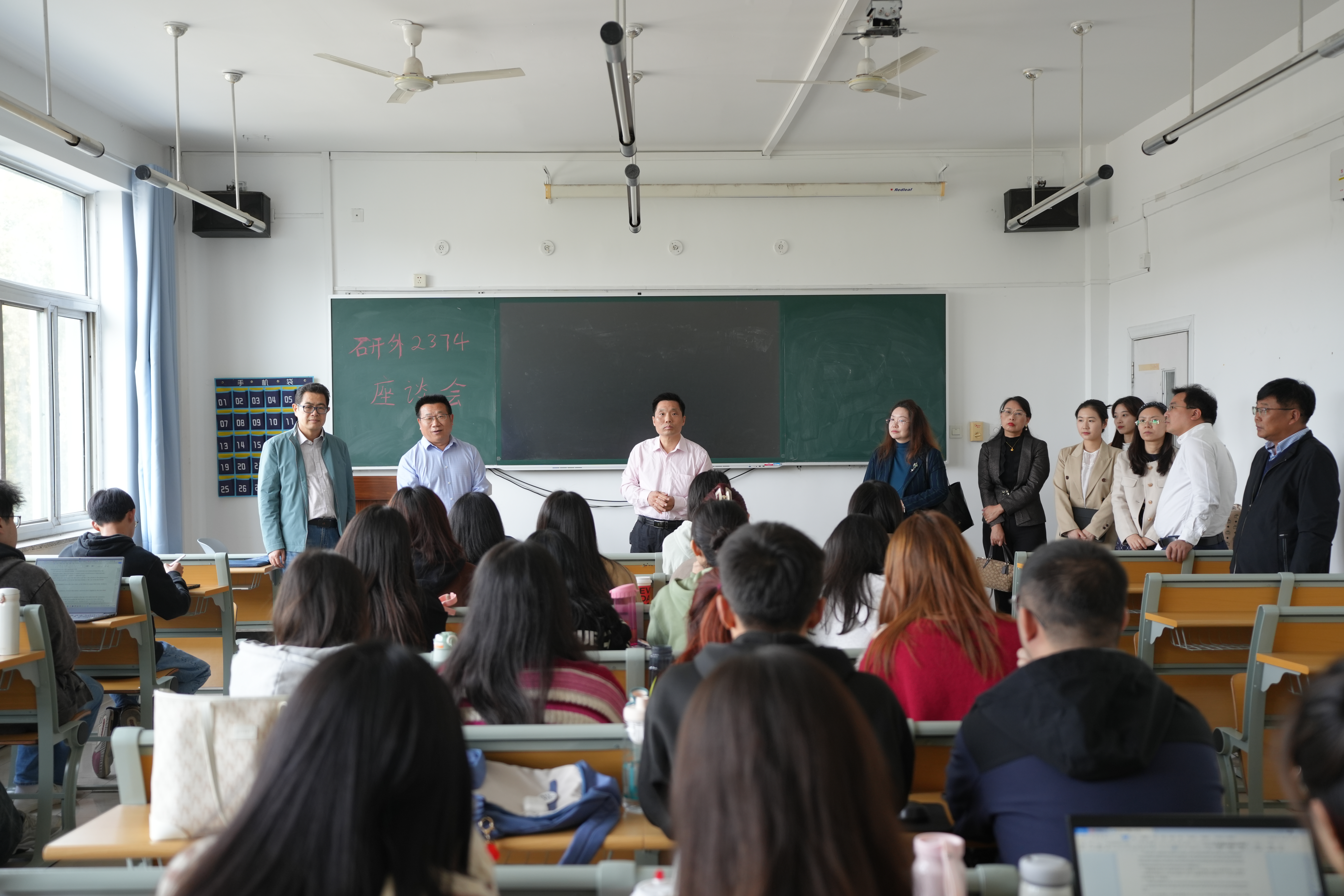 座谈会最后,于喜海指出,公司高度重视同学们的意见和建议,将深入研究并扎实落实各项可行性意见。接下来工作中,学院将继续充分发挥“班主任-研究生导师-辅导员-科研秘书”的互联互通作用,畅通机制解决同学们学习生活中的困难和疑惑。他鼓励同学们珍惜时光,把握国家图书馆纸质版书籍以及导师和学长学姐分享的电子版文献书籍等学术资源;提醒同学们做好学业和职业发展规划,关注就业相关平台信息,以目的性为导向合理安排学习时间;期望每一位外院学子都能够成长为专业能力强、道德品质高、综合素质足的新时代青年人才。