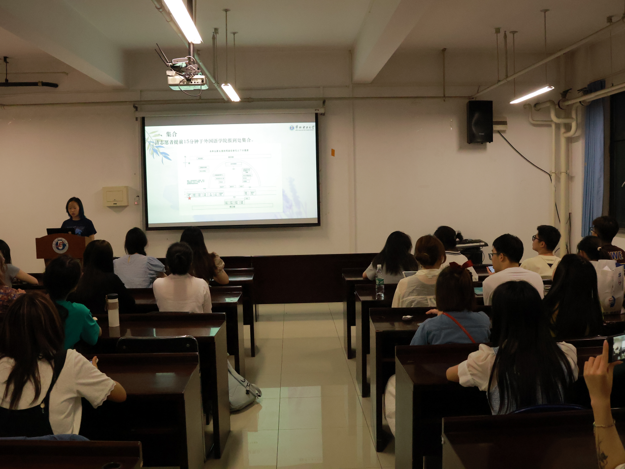 首先,吴嘉仪做了动员讲话,希望全体志愿者提高认识,统一思想,按照“暖心、高效、方便”的整体要求做好迎新接待工作,以饱满的热情完成此次志愿活动。会上以图文并茂的形式详细介绍了新生报到流程及志愿者工作事项,明确工作重点,细化责任分工。