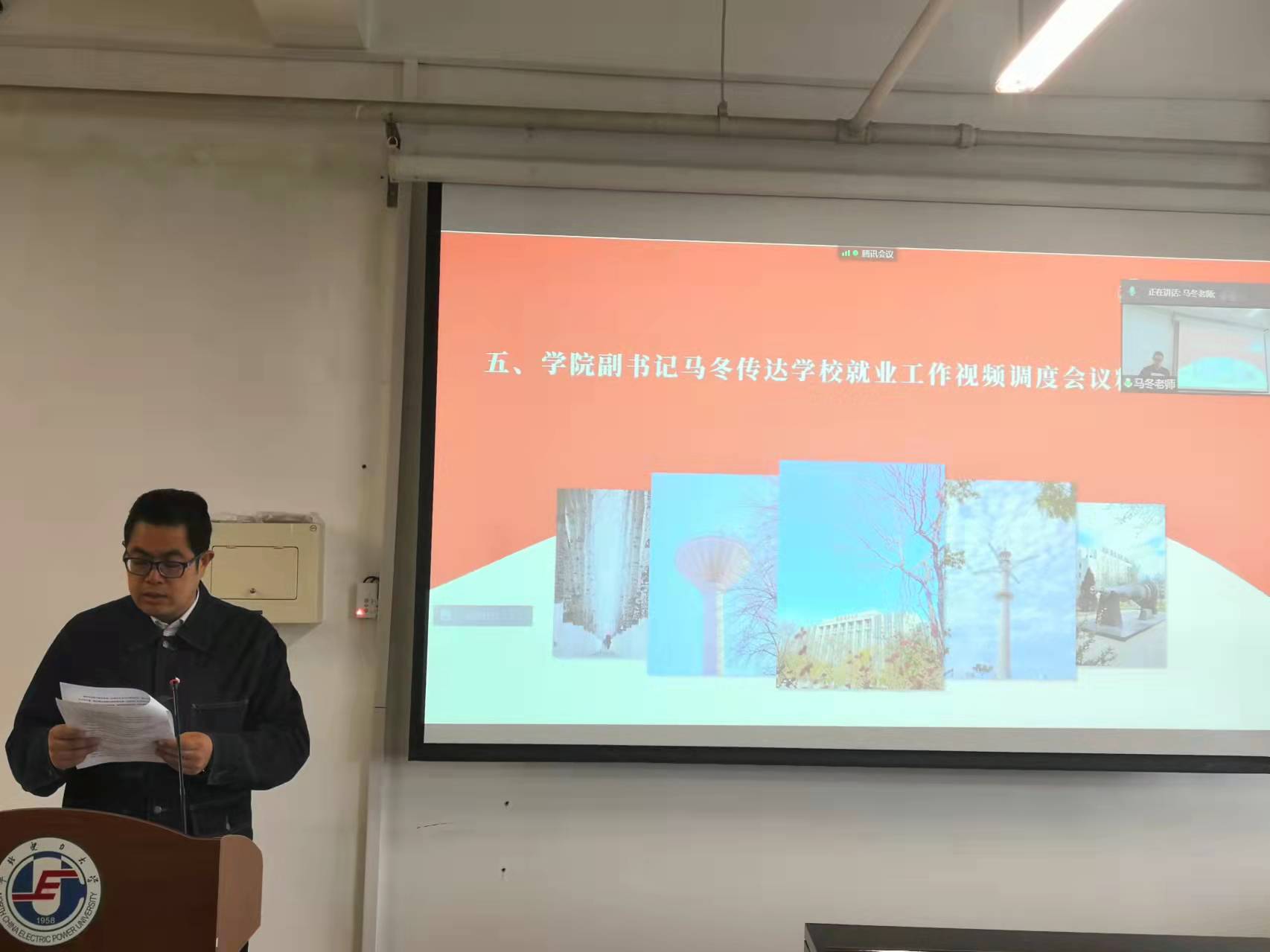 公司党委副书记马冬传达了学校就业工作视频调度会议精神,肯定了学院最近就业工作取得的成绩,更指出要清醒认识到2022年就业工作面临的巨大挑战,必须要紧紧抓住3月至5月这一重要的就业求职窗口期,紧密围绕学院本硕员工就业需求和就业心理,借鉴本科生的“就业坊”+深度辅导谈话,围绕“一个中心、两个辩证、三个准备、四个开源、五个细节”,开展“精准化”就业教育,下更大的决心和用更多的努力来扎实推进就业工作。