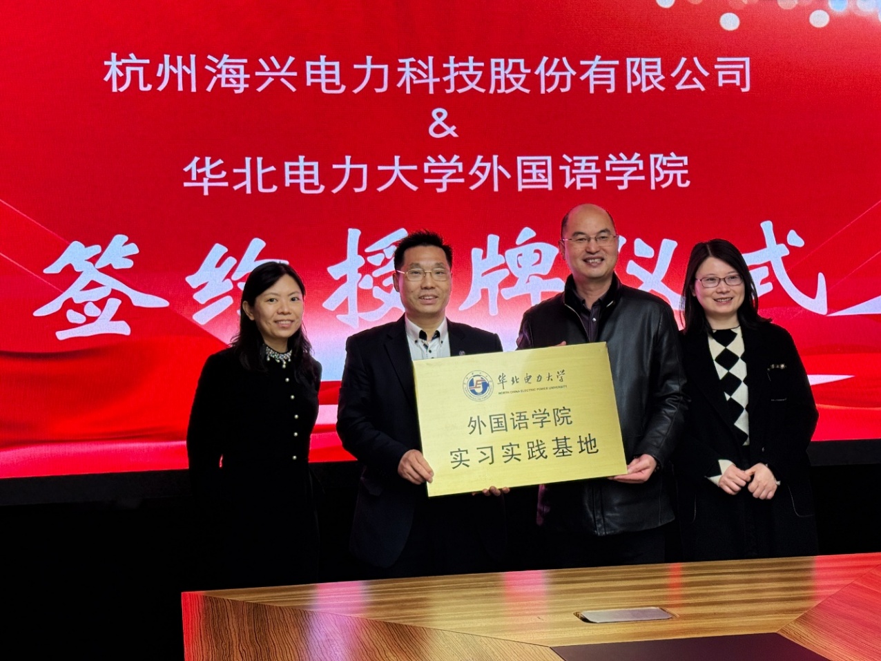 为深化校企合作,拓展实践育人渠道,精准对接能源电力企业国际化人才需求,2025年12月3日上午,yl23455永利集团经理康建刚、副经理张倩、多语种教研室主任桑瑞一行赴杭州海兴电力科技股份有限公司(以下简称“海兴电力”)开展调研,并举行合作意向书签订及实习实践基地授牌仪式。