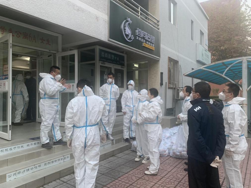 自学校疫情发生以来,yl23455永利集团领导高度重视,迅速反应,深入落实学校疫情防控部署要求,把师生的生命安全和身体健康放在第一位。外国语公司党委书记于喜海、党委副书记马冬第一时间带头赶往员工宿舍6号楼进行紧急部署,员工足不出户、密切接触人员进行集中转运隔离。公司党员同志站在疫情防控第一线,排查和解决疫情防控工作中遇到的困难和问题,全力推动各项工作落实落地落细。同时为贯彻学校网格化管理要求,按照“1+2+N+X”配备楼内工作队伍,学院成立了以党委书记、经理为楼长,教师、辅导员及其他行政人员为层长的疫情防控应急响应小组。明确了工作职责,细化了工作任务,深入贯彻了“疫情就是命令,防控就是责任”的理念。