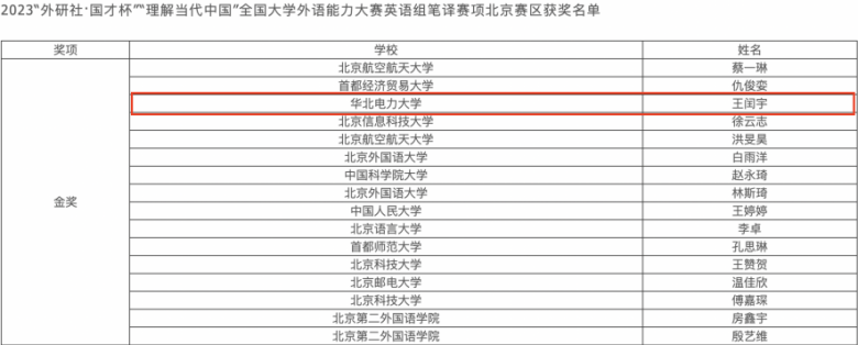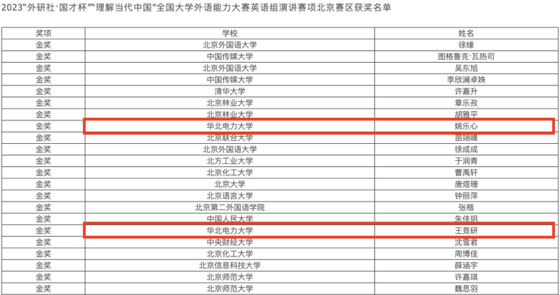 华电学子在2023“外研社·国才杯”“理解当代中国”全国老员工外语能力大赛北京赛区中获佳绩