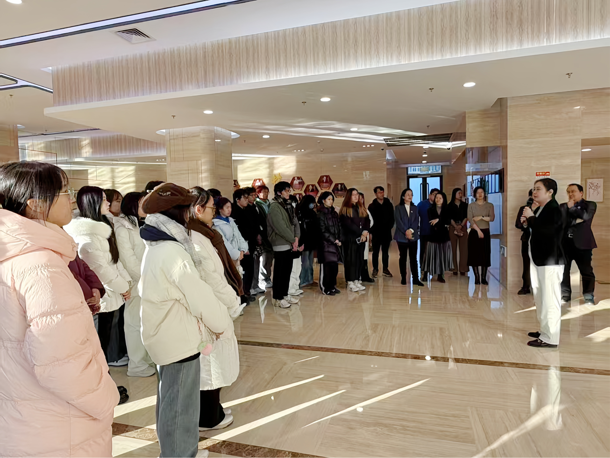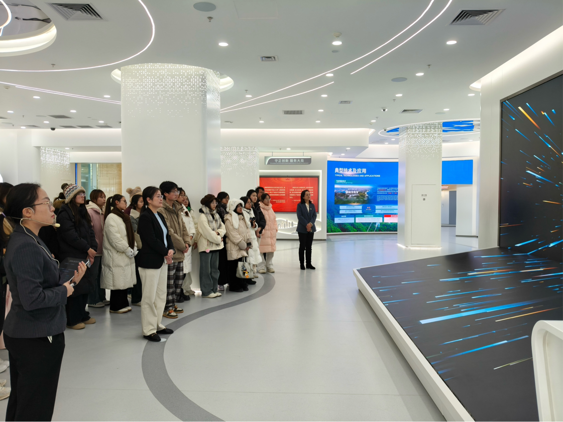 在引导员的带领下,师生集体观看企业宣传片,并听取了关于国家电网总体发展、业务布局及企业文化的系统介绍。大家重点了解了公司在构建新型电力系统方面的战略规划、目标任务与阶段性成果,以及公司国际业务的发展概况。展区陈列的各类荣誉奖项与社会公益记录,生动展现了国家电网在可持续发展和履责担当方面的长期耕耘成果。