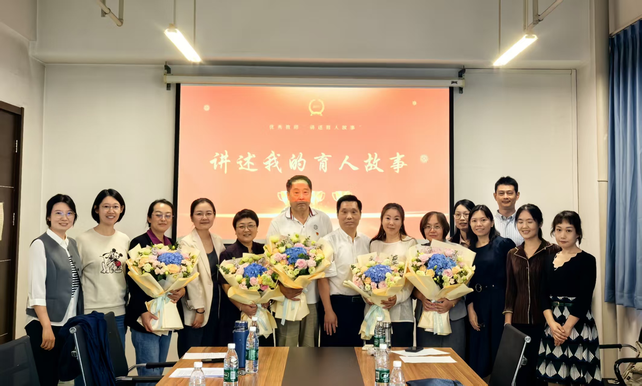 活动最后,青年教师向“讲述育人故事”优秀教师献花。