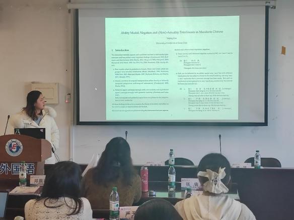 接着,来自世界各地的优秀青年学者分享了自己的研究成果。来自韩国延世大学陈越博士的讲座“数字人文与情感:哈葛德冒险小说中的情感结构与性别关系特征变化”,以AI技术建立数据库对文学文本情感主题进行了研究;来自中国人民大学严天欣博士的讲座“老年人门诊医患互动的言语行为分析”,以门诊对话作为文本,分析了医患间的的言语行为关系;来自中国人民大学胡茜博士的讲座“瞿秋白翻译实践与思想研究”,对瞿秋白翻译思想顺、信的辩证关系进行了梳理;来自北京师范大学王卉博士的讲座“素养如何落地生根:回归语言知识的意义”,对知识是语言的基础这一论断进行了阐释,并且呼吁建立以知识为基础的课程体系;来自华东政法大学林立博士、博士后的讲座“AI时代下的法律翻译:有效性与前景展望”,以AI技术支撑数据库建设,对法律话语进行了分析和建设;来自加州大学圣克鲁斯分校曹亚晴博士的讲座“Processing Focus Intervention in Mandarin Chinese”,对话语中“没”“不”的功能作用进行了分析。