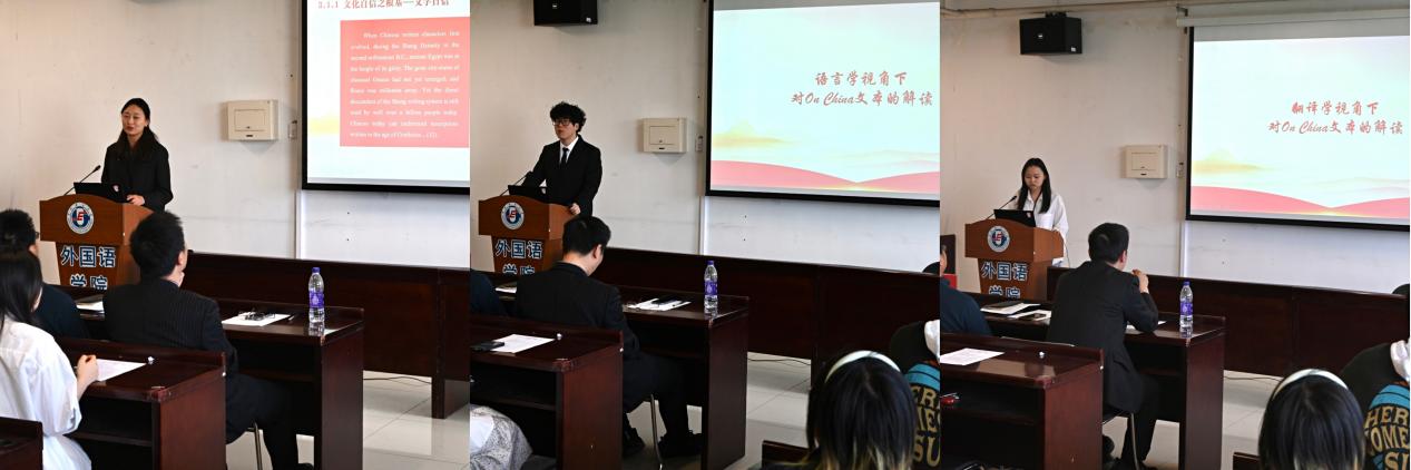 研究生党支部的李晓彤、刘子铭和郎彧分别从文学、语言学和翻译学三个专业方向对《论中国》(