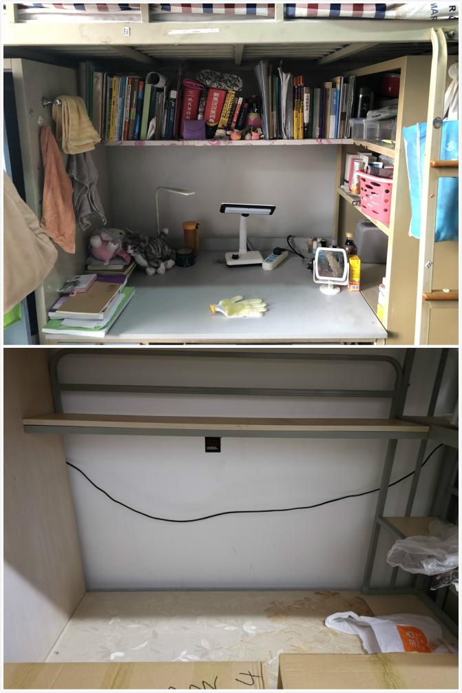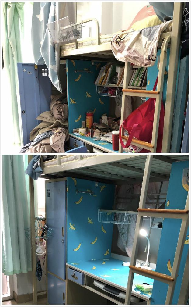 宿舍物品打包前后对比